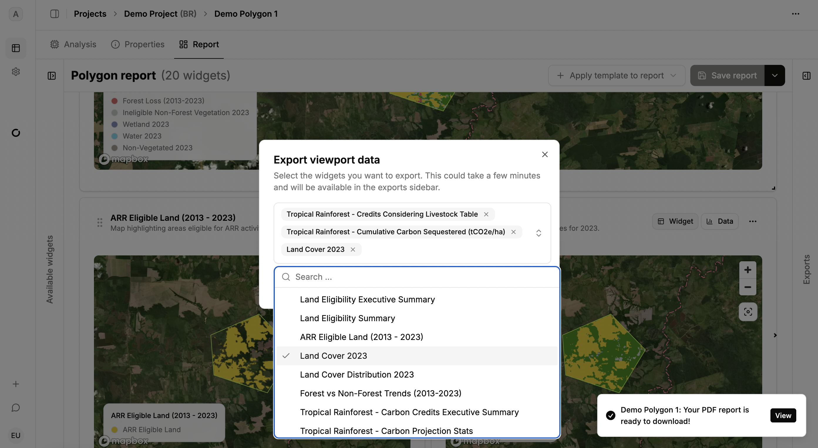LandOS brings together global and regional geospatial datasets to support ecosystem assessment, carbon accounting, and project design. It combines project management, quantitative analysis, and geospatial tools so teams can understand their landbase, quickly assess pre-feasibility, organize project information, and make better decisions.